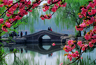 在水一方:园内目前体量较大的一株吉野类樱花,独立湖畔丰姿绰约。她横生的花枝舒展秀丽,像热情开张的臂膀。她与春水相映而成的画面,已成为公园樱花的代表景致,也成为游人争相合影的佳处。  详情>>